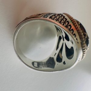 işçilikli yan motifleri özel işlemmiş kasası dolu gümüş yüzük.