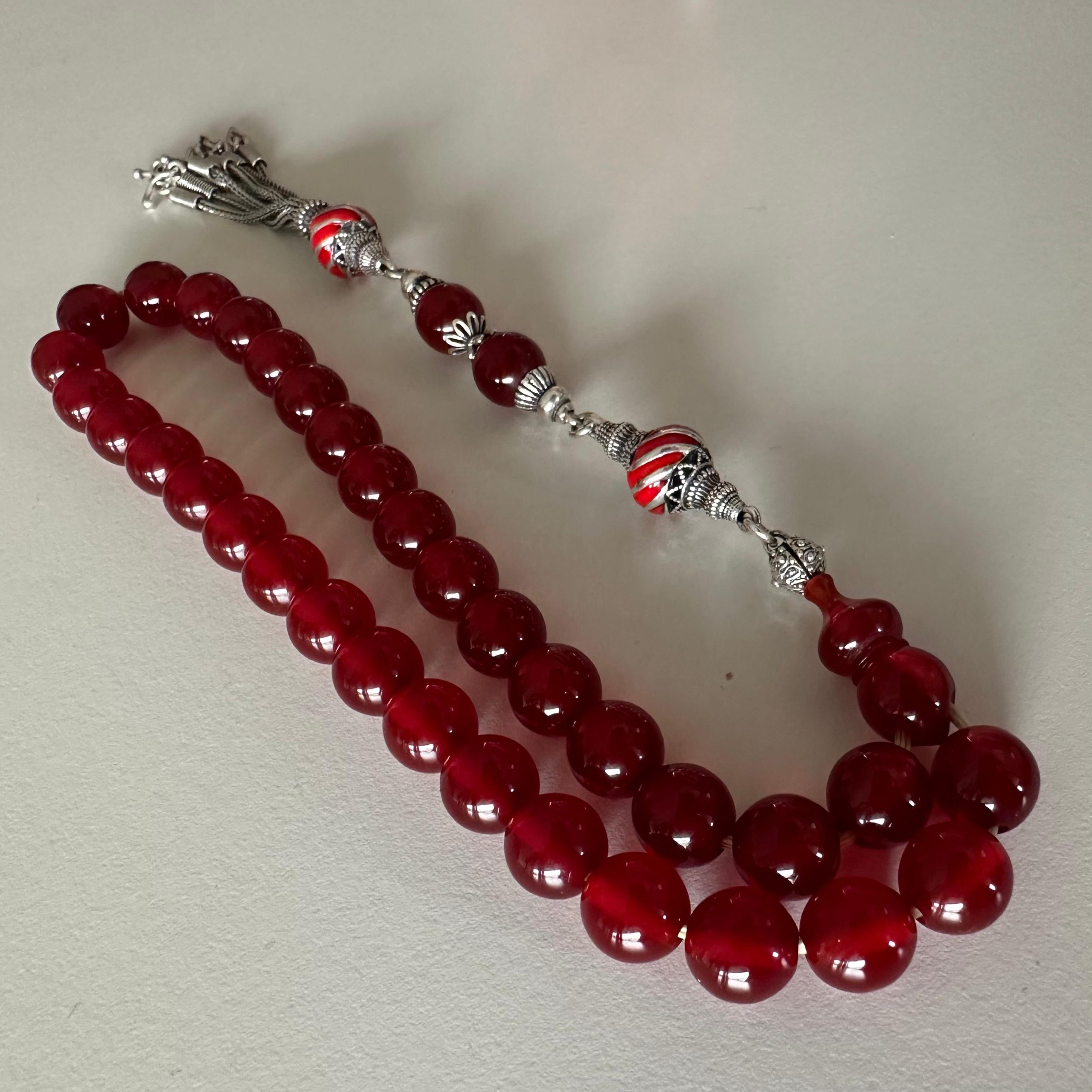 iki yedek habbeli eski sıkma kehribar tesbih.