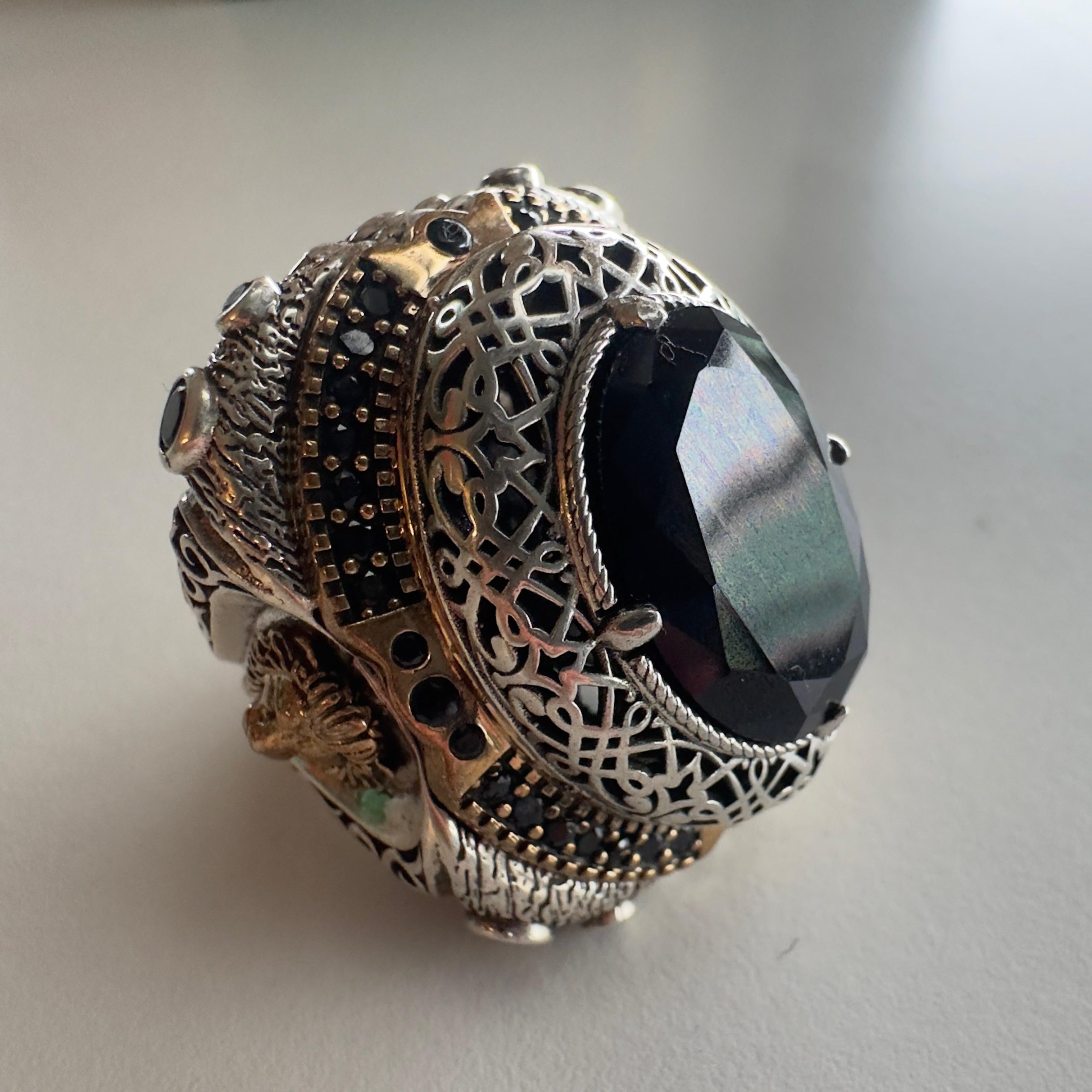dönem tasarımı yapılmış zorbey usta sanat eseri gümüş yüzük.