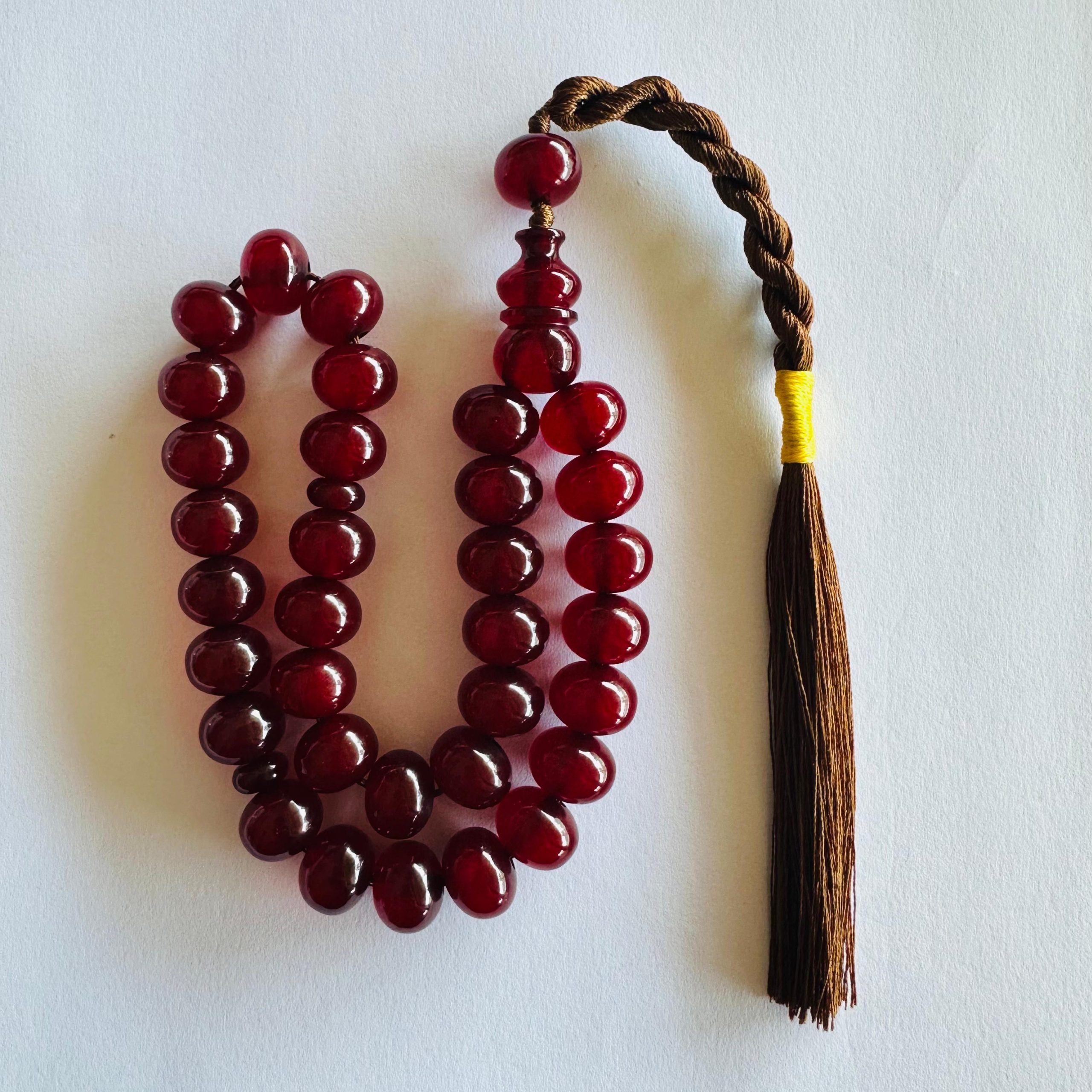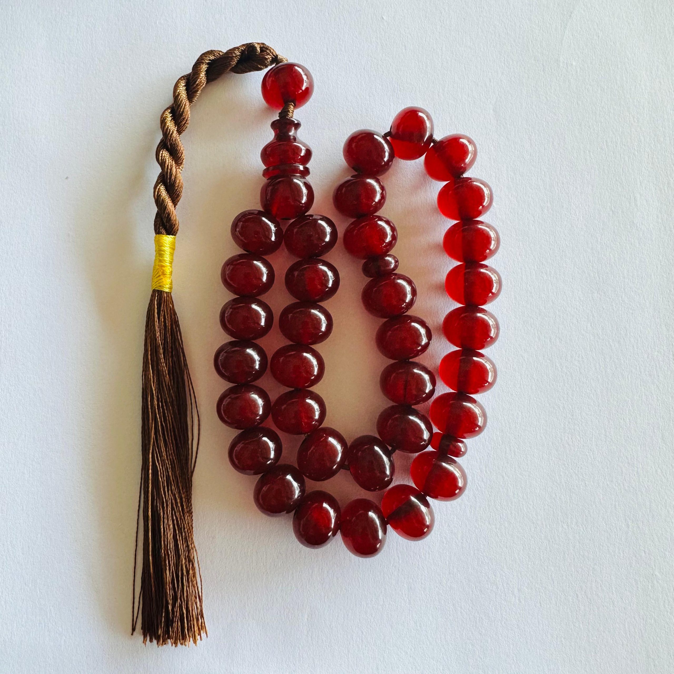 Eski vişne renkli 20-25 yıllık sıkma kehribar tesbih