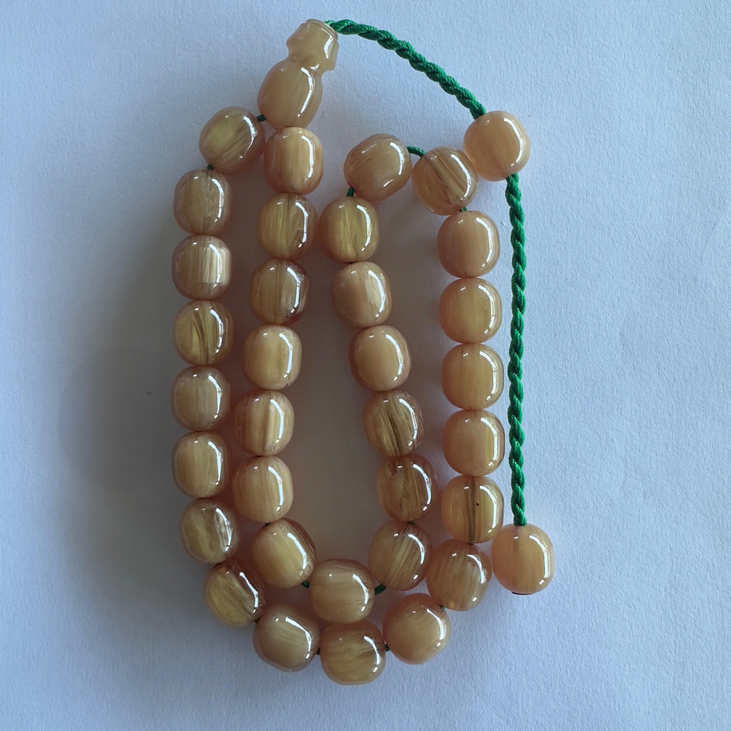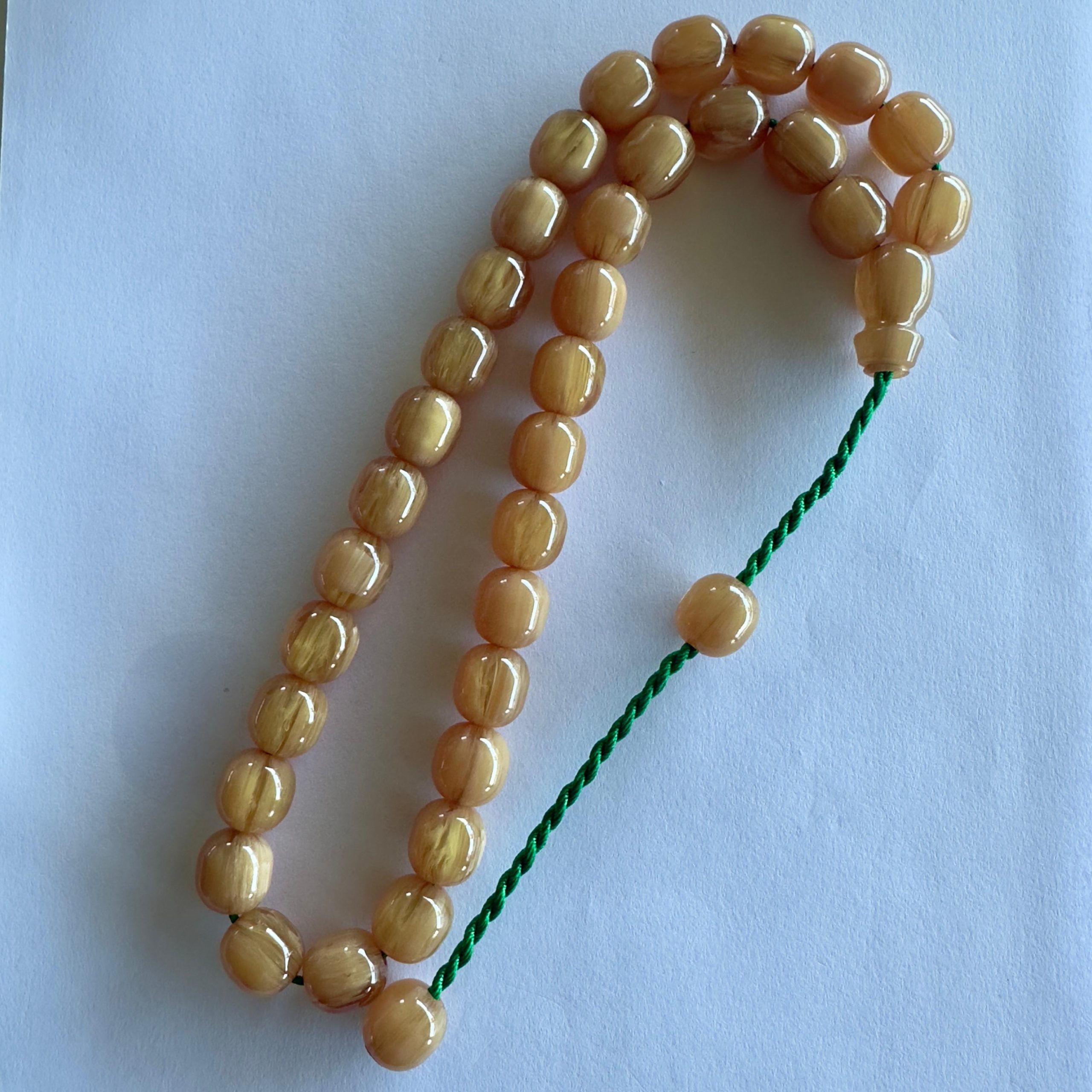Yeşil Hamurdan Hareli Sıkma Kehribar Tesbih